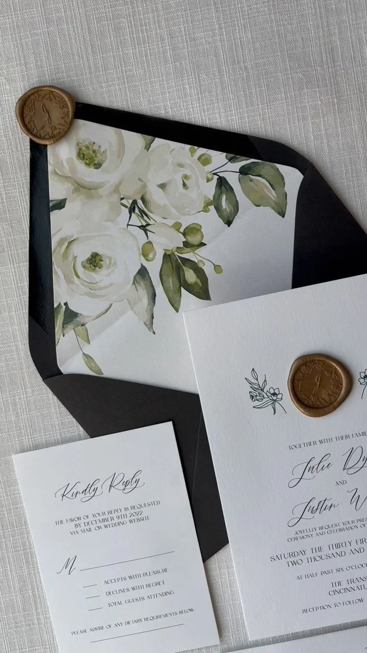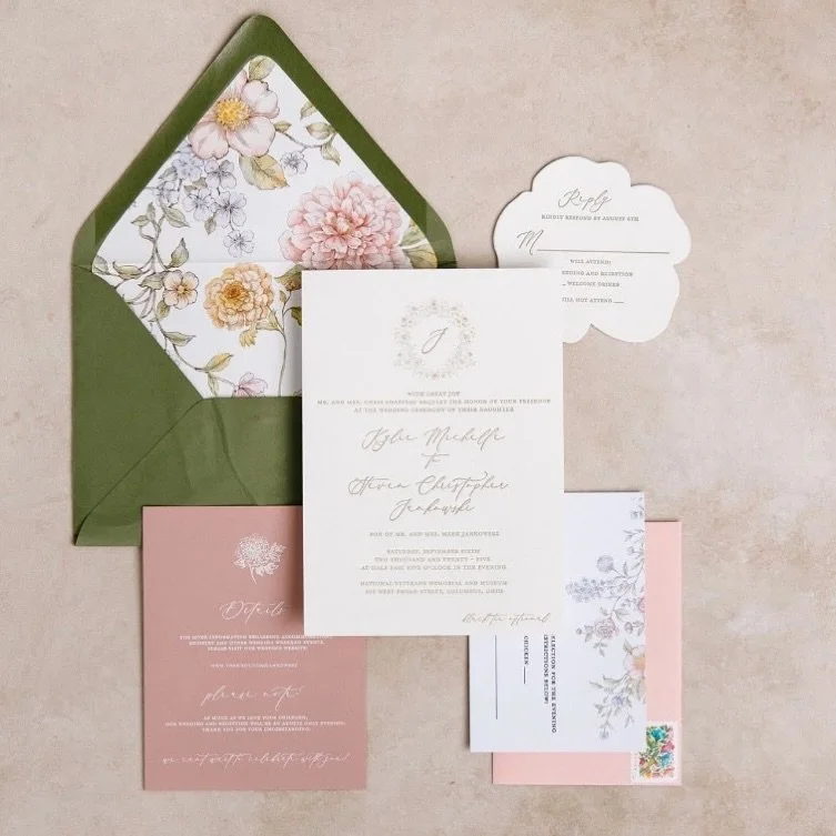 bespoke save the dates, invitation suites, and day of stationery for modern, upscale couples and their unforgettable weddings
